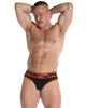 Slither in to our new orange cheetah ouroboros brief! This brief features a black mesh body and soft cotton pouch.