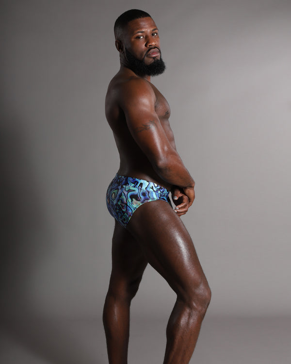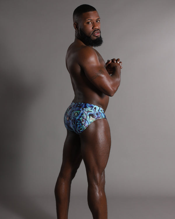 Reach new depths of style in our new Abalone Contour Swim Brief! This new fitted silhouette is adorned with an elegant abalone print that will take you one step closer to Atlantis. Order your same size as our other Classic and Bikini briefs.