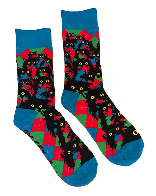 Argyle kitty crew socks! Now available in 3 color combos. Made with super soft cotton. One size fits many.