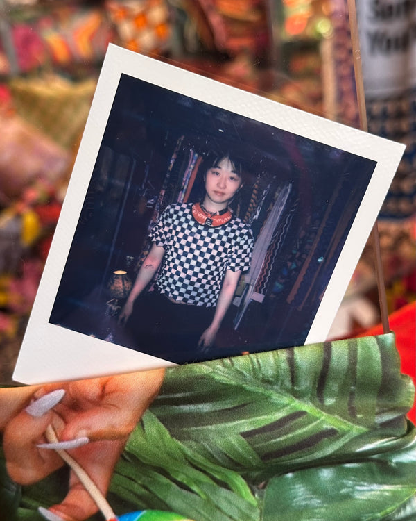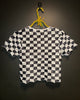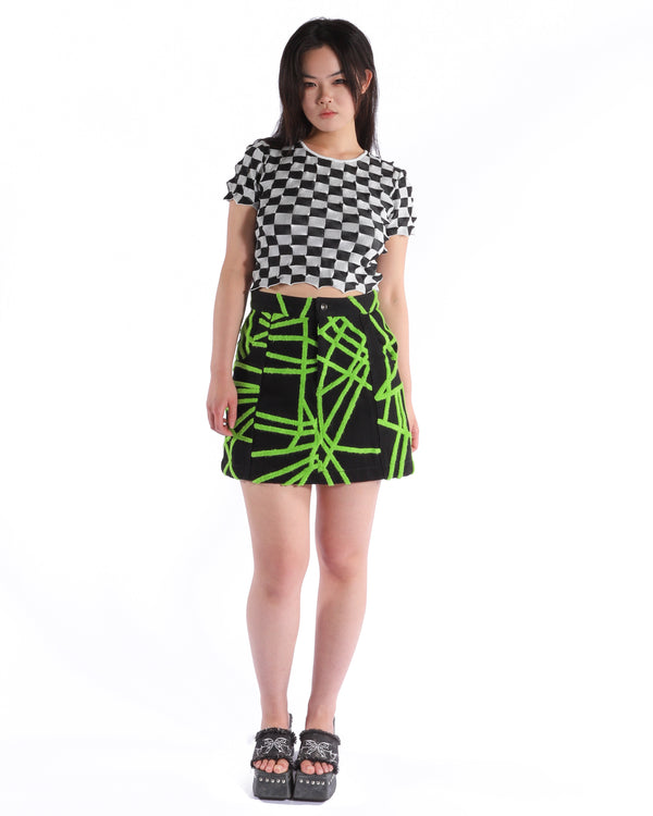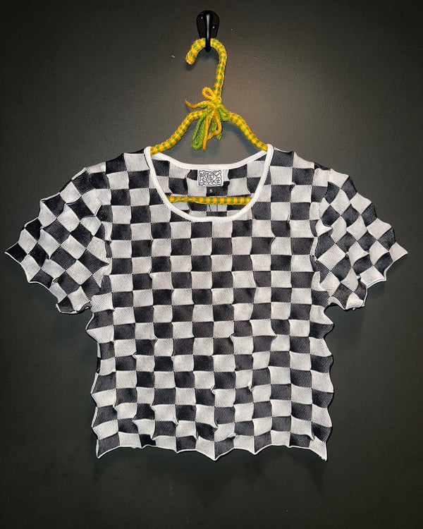 Unleash your wild side with our knitted black and white spiky shirt! Cropped fit with some stretch. Order a size up for a looser fit.