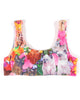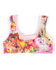 Super cute bralette style kitty garden party print swim top. Made with textured rib spandex adn sewn in seamless style for maximum comfort. Fully lined with removable cups. Happy Swimming!