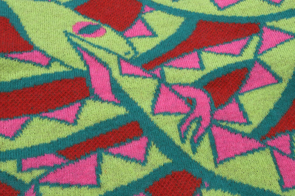 Slither in to our mohair Ouroboros sweater! We knitted this Pretty Snake sweater with a heavy double layer knit jacquard with classic ski sweater shape. Boxy silhouette with set-in sleeves. The fit is unisex, check the chest measurements below. For an example, if you wear a Men's M we recommend you get a L for a loose fit.
