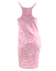 We conjured up a new witch dress that's perfectly sweet and spooky! Our long tank style has a racer cut front and back and can be worn long or ruched. Each dress is silk screen printed in pink witchy toille all over on soft and stretchy cotton spandex baby rib fabric.