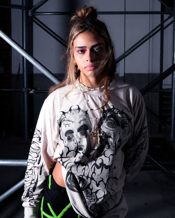 Inspired by Halloween memorabilia, we collaborated with one of our favorite artists, Jump Rope, to make this Pretty Snake exclusive long sleeve butterfly tee with printed sleeves.