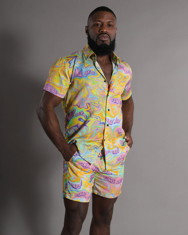 The Final Days marble shirt features our signature metal buttons, box pleat in back and square cut. Fits similar to our Camp Shirts.