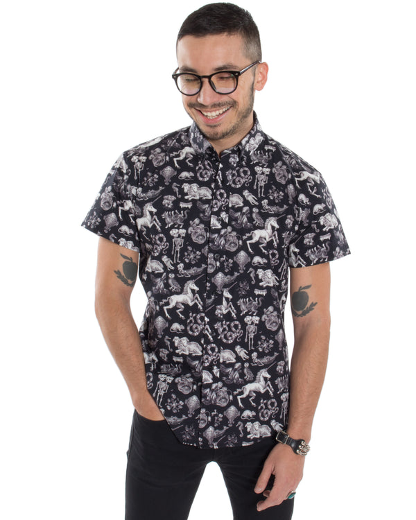 The Freak of Nature button up short sleeve dress shirt. 100% Cotton poplin with a modern fit we spent years perfecting. These gorgeous oddities are illustrated by Julian Farmar-Bowers just for Pretty Snake!