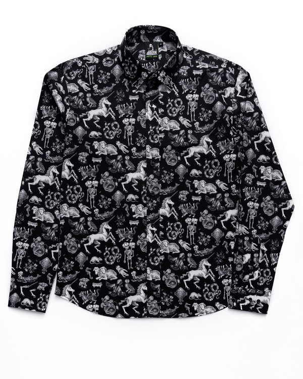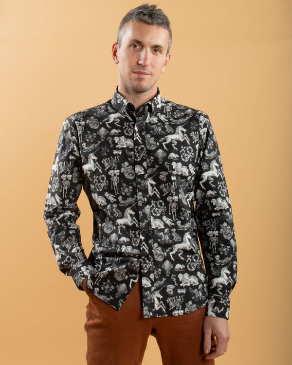 The Freak of Nature button up long sleeve dress shirt. 100% Cotton poplin with a modern fit we spent years perfecting. These gorgeous oddities are illustrated by Julian Farmar-Bowers just for Pretty Snake!