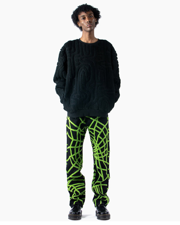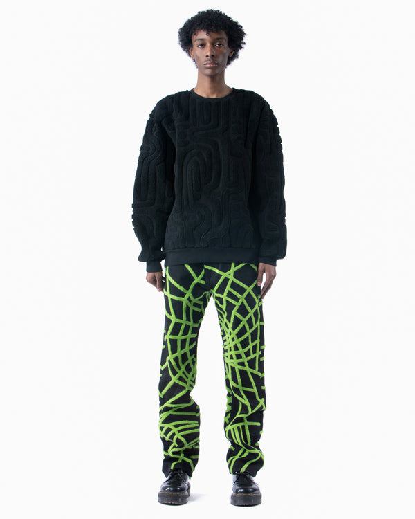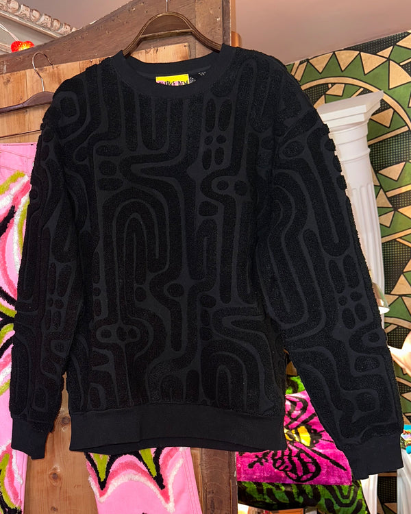 Black heavyweight cotton sweatshirt all over embroidered in black parterre.