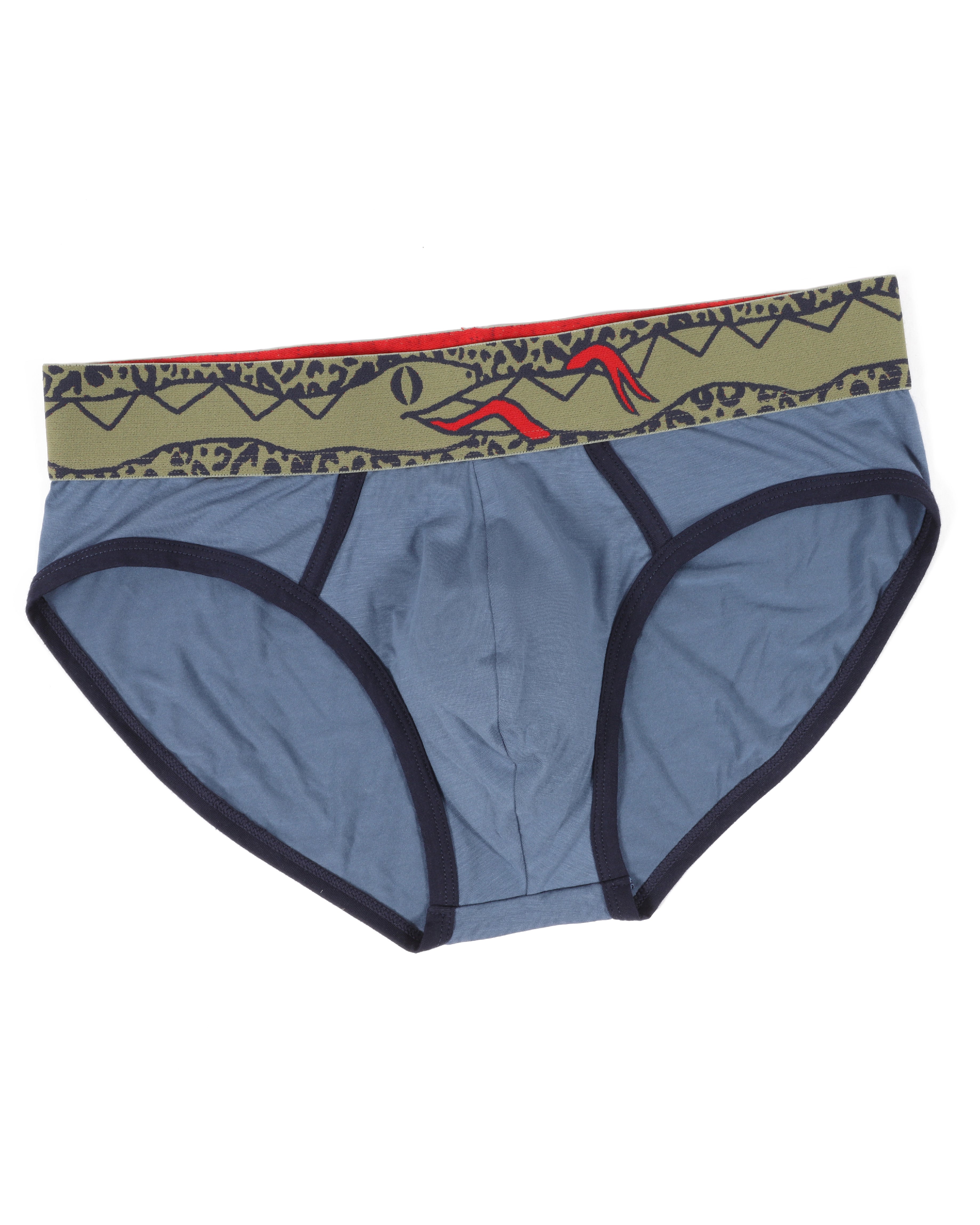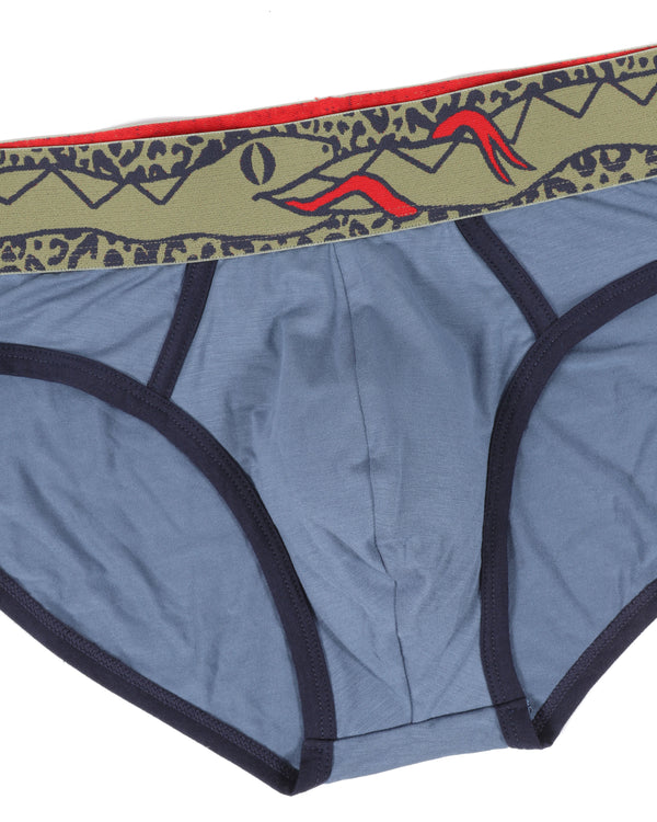 Slither in to our new sage cheetah ouroboros brief! This brief is made with super soft modal and navy cotton trim.
