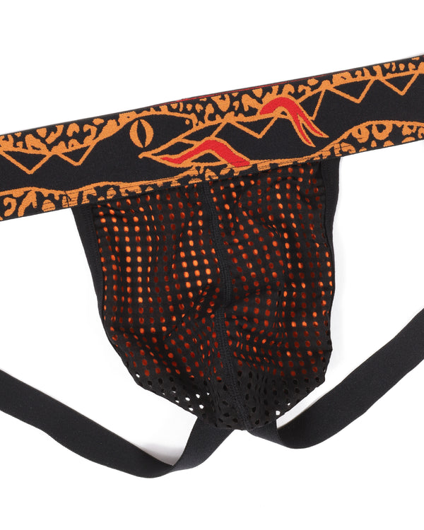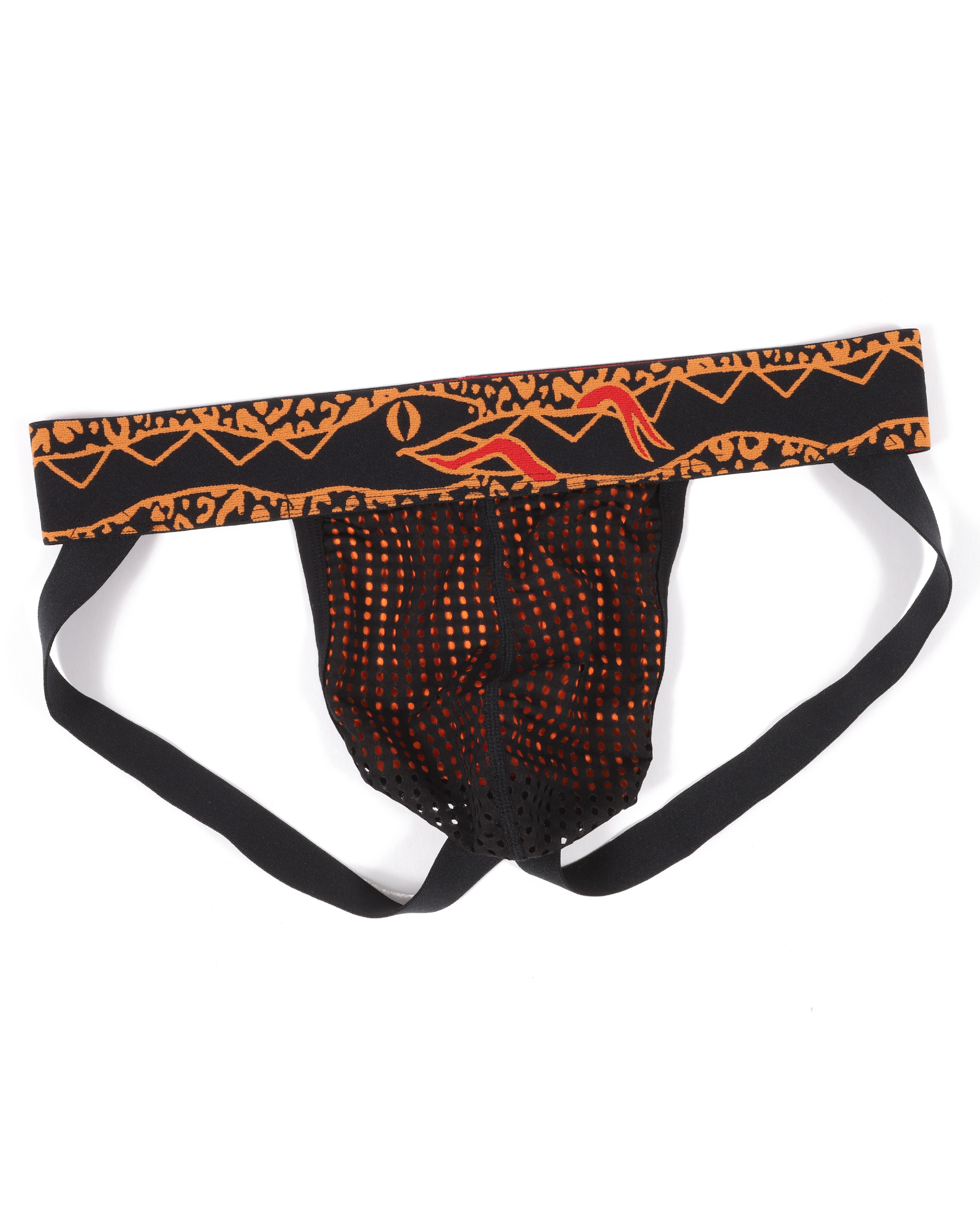 Slither in to our new orange cheetah ouroboros jock! This double layer jock features a black mesh exterior and soft orange modal pouch.