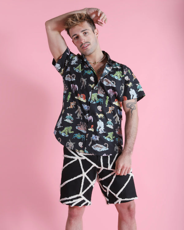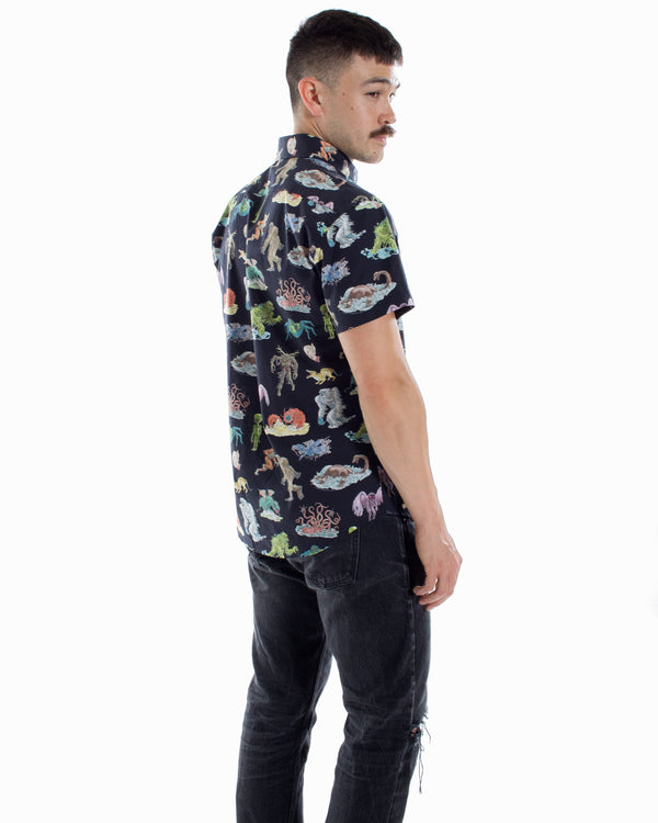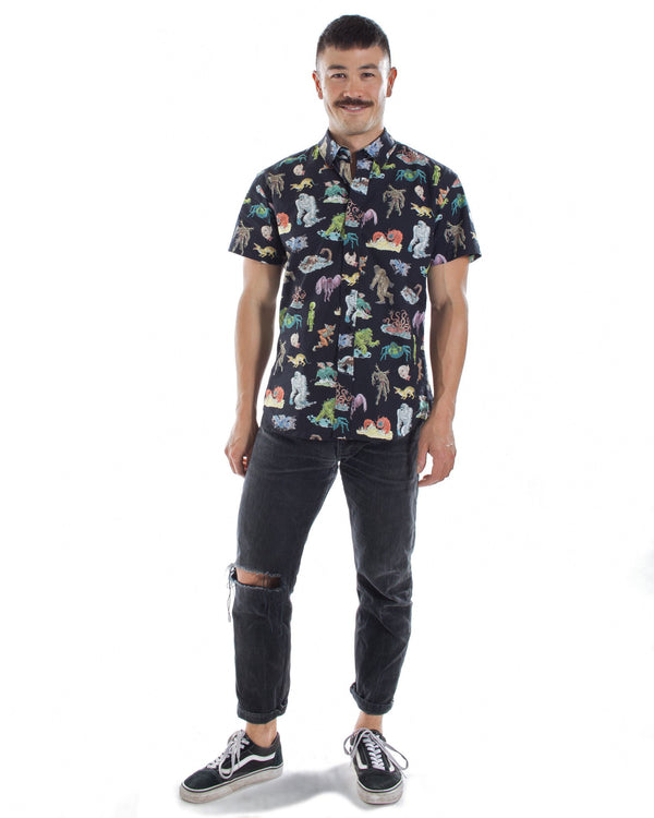 Cryptozoology has never been classier! Introducing this awesome button up short sleeve dress shirt. 100% Cotton poplin with a modern fit we spent years perfecting. These gorgeous cryptids are illustrated by Julian Farmar-Bowers just for Pretty Snake! All of your friends are here: Sasquatch, Bat Boy, Abominable Snowman, Mothman, Loch Ness Monster, Thunder Bird, Death Worm, Chupacabra, Gremlin, Alien, Swamp Monster, Jersey Devil, Thylacine and Wendigo. Plus Arachne, one of my favorite mythological creatures!