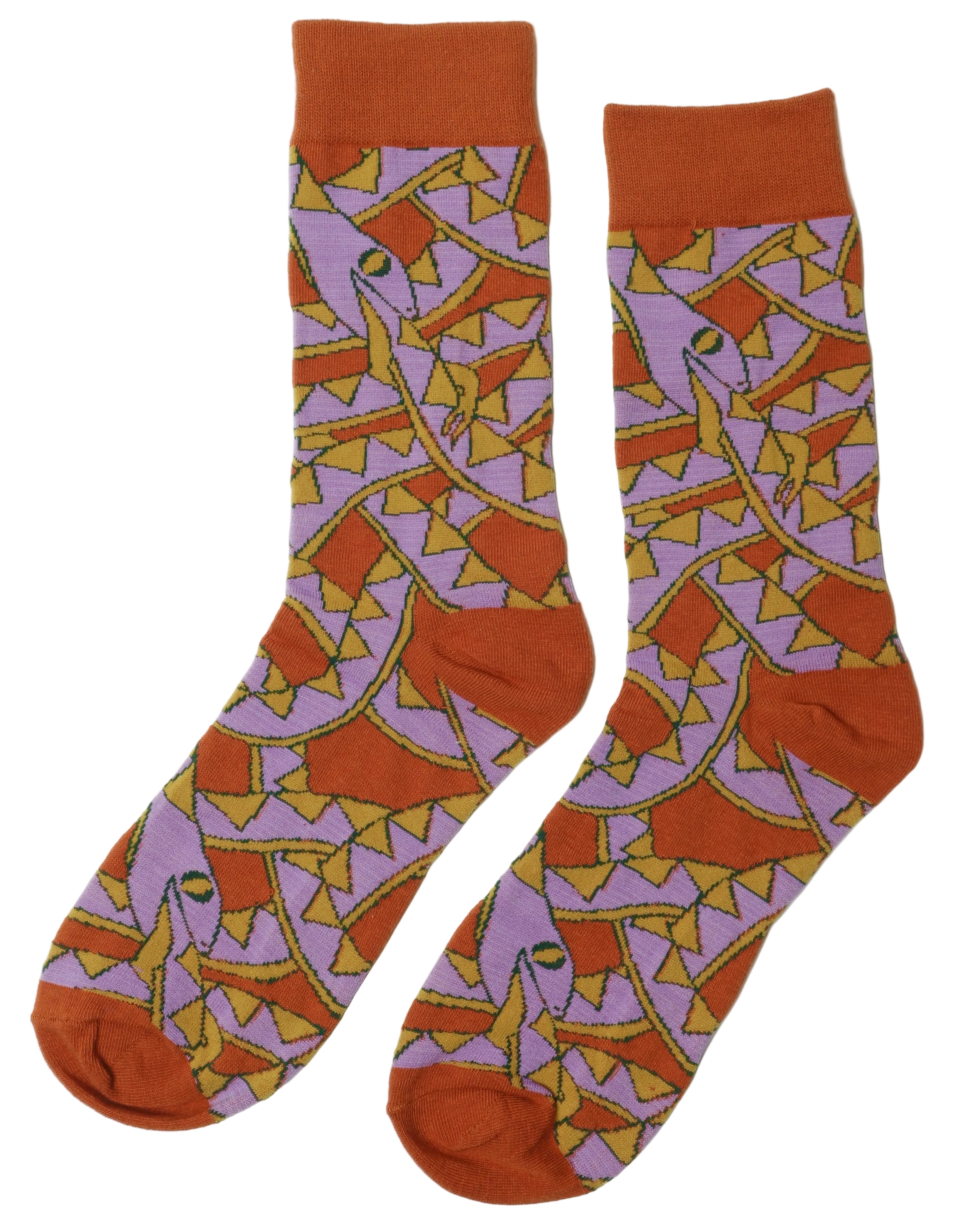 Slither into our ouroboros socks in spired by the rainbow snake!