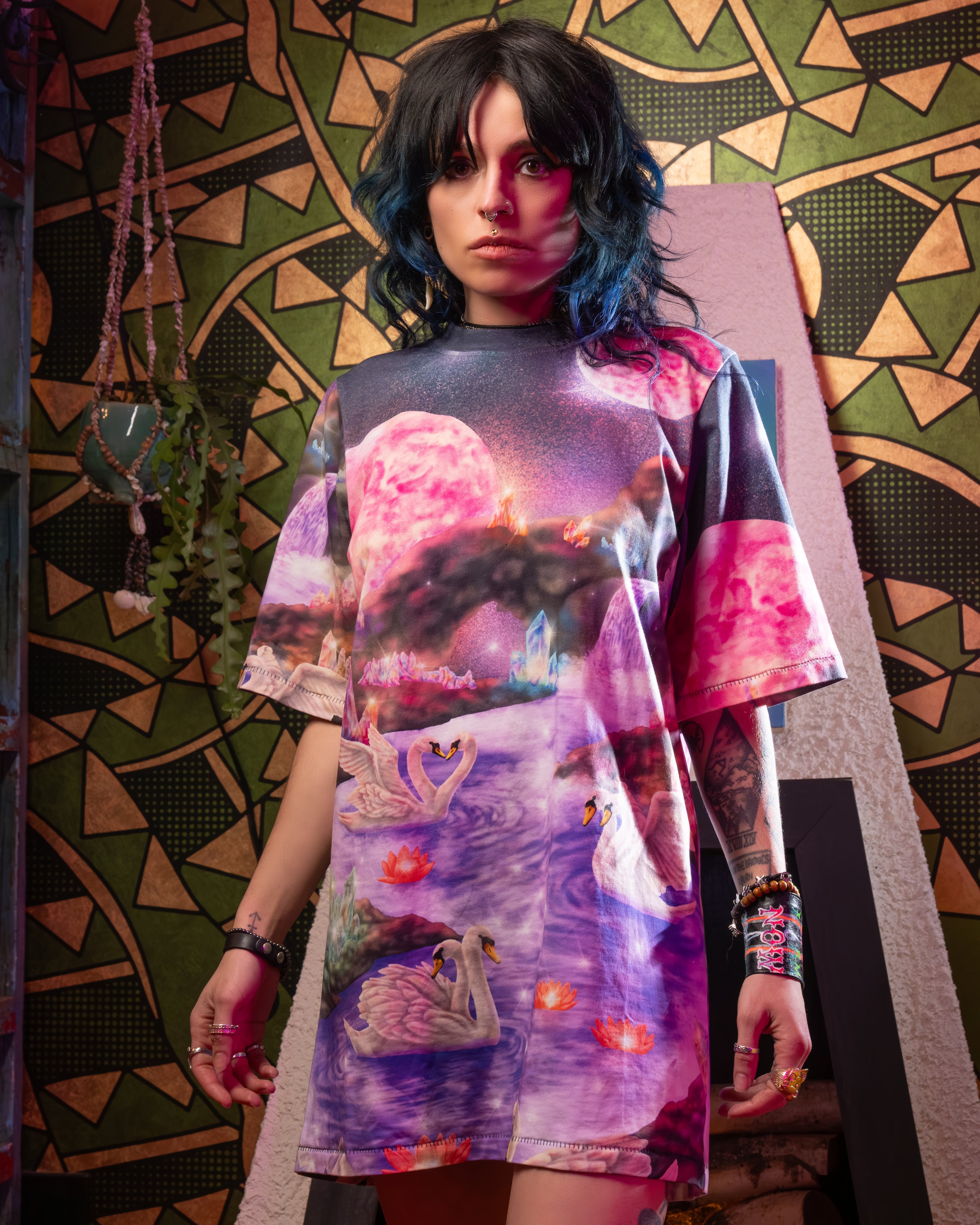 Oversized mystical mutant swan tee.