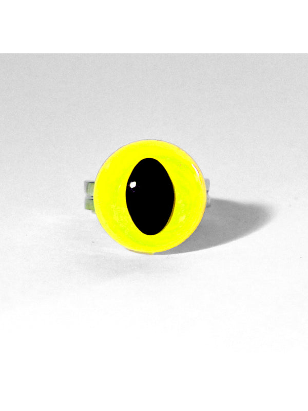 Neon yellow eye ring. The eye is plastic and base is adjustable metal.